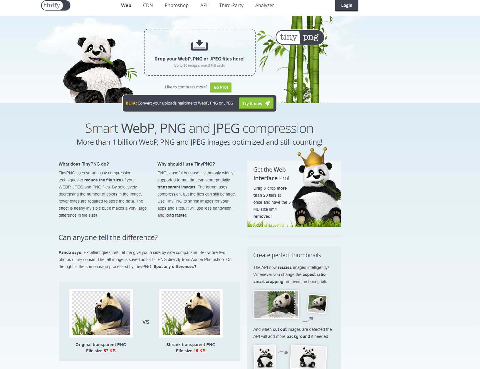 之前的png图片,部分背景图甚至高达1.3m,因此我们在使用图片的时候还是要注意下图片的大小,图片太大的要进行适量的压缩,以下是我使用比较多的在线压缩网站(https://tinypng.com/)
